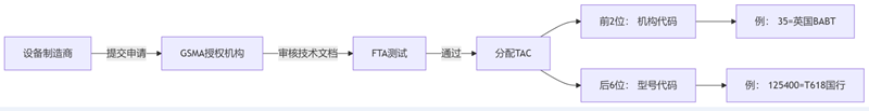 每个 IMEI 均包含三个关键部分 —— 型号批准码(TAC)、序列号(Serial Number)和校验位(Check Digit)。GSMA 通过 TAC 分配服务,向生产符合第三代合作伙伴计划(3GPP)标准设备的制造商分配官方 TAC 码。设备制造商需提交分配申请,并提供制造商名称、设备型号以及选定的技术参数(如支持的频段)等信息。经 GSMA 验证通过后,TAC 码将分配给设备制造商,供其用于生产。